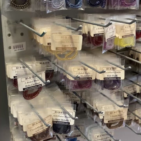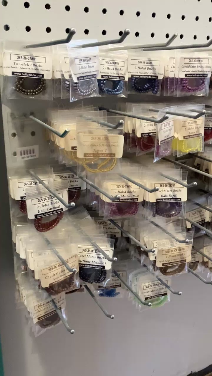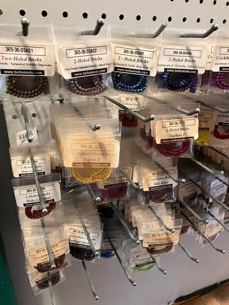 Bulk lot of all remaining CzechMates 2-Hole Bricks. Approximately 763 packaged items in 98 different colors, valued at over $3800.